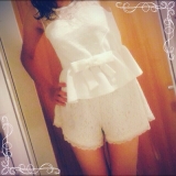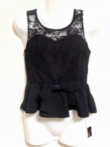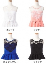 レース切替とウエストリボンが大人レトロで、ぺプラムデザインがウエスト細魅せ効果抜群!!