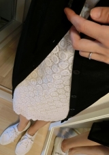 短丈トップスにミニスカートやショートパンツを合わせたコーデに羽織ると、美脚スタイルを演出できます。