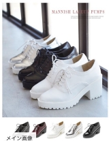 [厚底レースアップマニッシュパンプス]