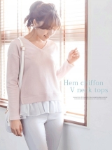 ボリューミーな裾シフォンギャザー&脇スリットをデザインしたトレンドトップスです。