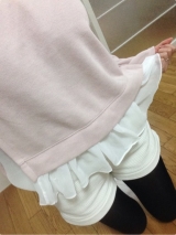 凹凸のあるしっかりとしたカットソー生地(テレコ素材)を使用し、裾にあしらったシフォンが大人可愛さをプラス。
