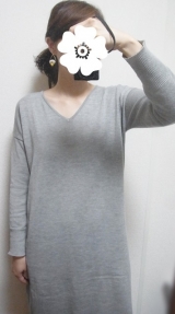 [裾リブVネックニットワンピース]