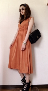 今回、こちらのマキシワンピースをお試しさせてもらいました(^^)2wayなので胸元見せても、背中を見せても可愛いワンピースカラーは5色で私がお試ししたのはキャロットオレンジ私の身長が167cmなので大きい方が着るとこのようなイメージ膝下くらいかな?サイズはこんな感じです裏地が付いてるので透… 2016/06/26