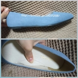 またトゥの裏地部分にスポンジを張り合わせ、足当たりがやさしくなるように仕上げました。