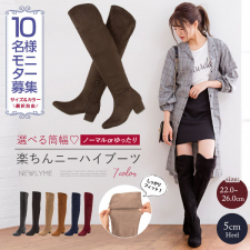 [5cmローヒール楽チンニーハイブーツ ]