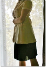 ロング丈には長めの裏地を付け、ひざが透けることがないよう、工夫しました。