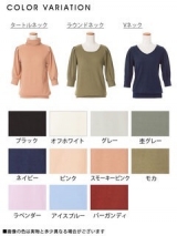 首周りが「ラウンド」「Vネック」「タートル」からお選びいただける、7分丈トップスがお目見えしました。