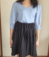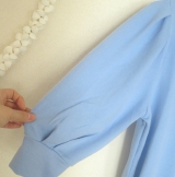 袖はややボリュームのある、パフスリーブ。二の腕をしっかりとカバーし、女性らしさを演出します。