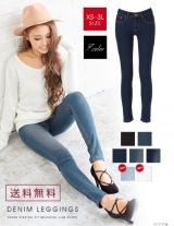 [美ラインデニムレギンスパンツ]