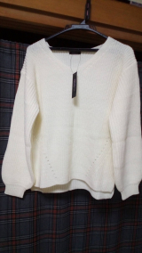 [畦編みVネックニットトップス]