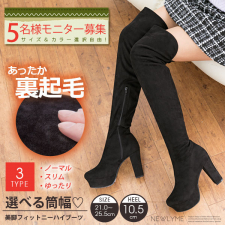 シリーズ累計13万足超えの実力!選べる筒幅ニーハイブーツより裏起毛Verが登場しました♪