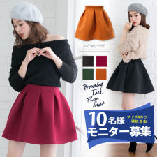 ハリのあるボンディング素材で上品な、タック入りフレアミニスカートがお目見え。