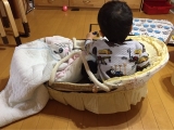 兄弟育児に備えてベビーベッドを導入してみて、赤ちゃんにとって安全な居場所は柵で囲われていることが重要と気付きました〈関連記事〉* 2017/06/01