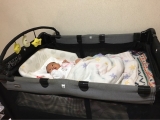 『あかちゃんのおやすみタイムを第一に考えたベッドです』
