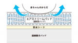 あかちゃんの質の高い睡眠を実現するために、新開発のレイヤーシステム構造や、皮膚科医と開発した素材を採用しました。
