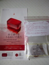 最近いろーんな化粧品を試しているせいか? 夏の日焼け×乾燥のせいか? お肌がごわごわしていました そこでAHAでピーリング効果を期待! オザキコスメ従来品の【AHAリファインソープ】 おためし品です 10gの赤い石鹸と専用ネット付きがうれしい♪ 石鹸の55%が美容成というすばら… 2011/08/01