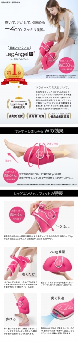 レッグエンジェル フィットは脚に直接巻きつけて眠る新発想の足マクラです。巻きつけて眠ることでカカトが自然に浮き上がり、脚を頭より高い位置に持ちあげてキープ。さらに、加圧ベルトでふくらはぎに圧力を加えることで、脚をすっきり、リフレッシュします。