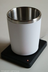 クレードル(台座)に専用タンブラーをおくだけで中の飲み物を一定の温度に保てる他、スマートフォンのワイヤレス充電器としても使用できます。