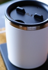 | # 01.TUMBLER SET_WHITE クレードルからタンブラーへワイヤレスで電力を供給。ヒーター 内蔵のタンブラーは、クレードルに置くだけで、いつまでも 飲み物を飲み頃の温度(60℃~70℃)で保温(※1)します。 飲み物が少なくなっても温度が下がりません。 また、クレードルに携帯電話を置けば充電(※2)もできます。 |