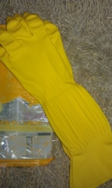 モニプラさんの案件で、モニターしてた…ゴム手袋…遂に、敗れちゃったけど…優れものでした!是非とも、また、見つけて購入したいです!ただ改良していただけるなら…もう少し、上のゴムの方は、締め付けてもいいのかも??使ってて、すぐに緩んできたからね…でも匂いの方は全く大丈夫でした!!素敵な案… 2011/10/30