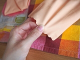柔らかく使いやすい中厚手です。内面には裏毛をつけ、さらに特殊加工を施しておりますので、スムースに脱ぎはめできます。