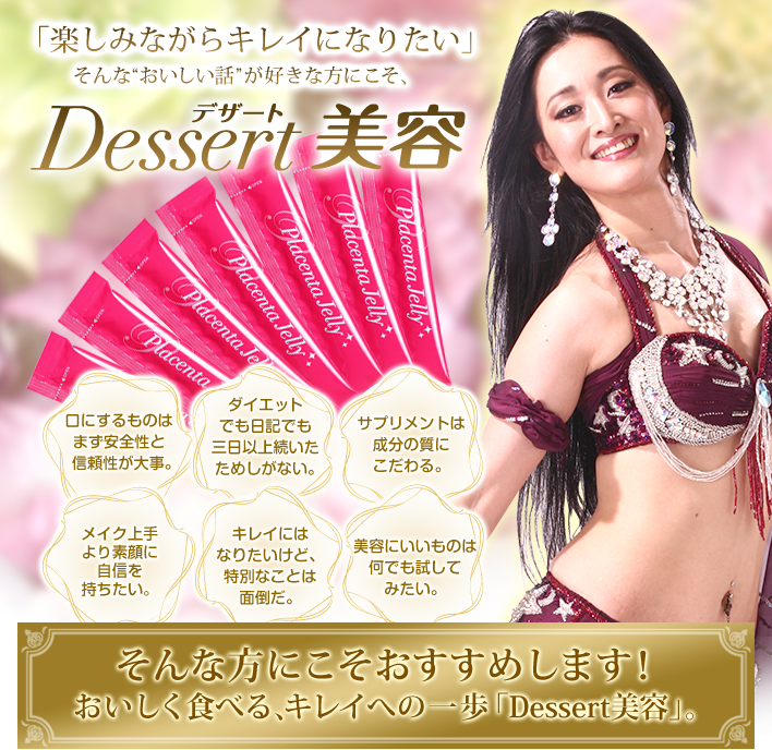 アース・バイオケミカル株式会社さんのDessertプラセンタゼリーを試してみました。http://www.earth-beauty.jp/5つの美感成分配合が入っていますプラセンタエキス、フィッシュコラーゲン、ヒアルロン酸、ツバメの巣エキス、ビタミンC特に、プラセンタエキス(2000mg)フィッシュコラーゲン(1000mg)がたっぷり配合されていますよピーチ味でとっても美味しい弾力があるゼリーで歯ごたえがありました。おやつ感覚で頂ける美容ゼリーですね。持ち運びも便利でどこででも頂けますよ。E...