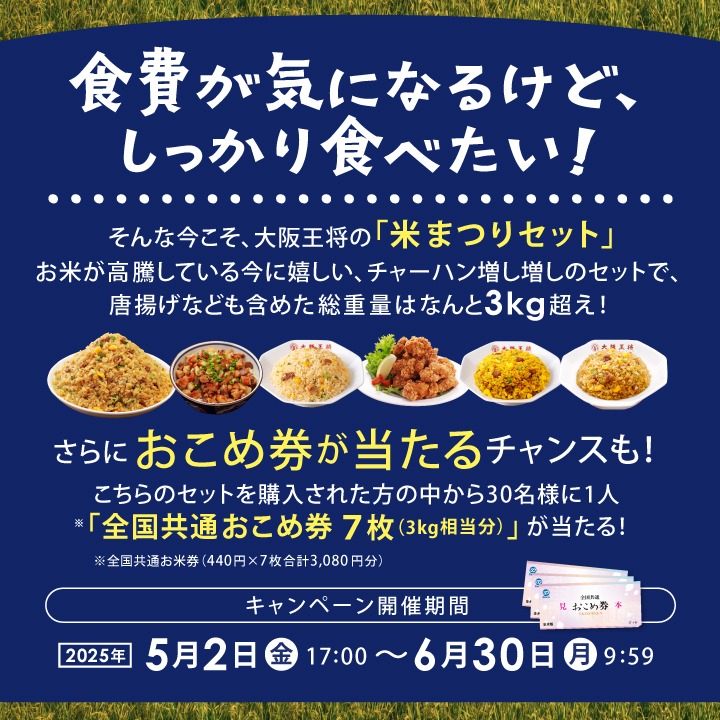セットをご注文いただいた方の中から30人に1人抽選で《全国共通おこめ券(3,080円分)》が当たるキャンペーンも実施中!