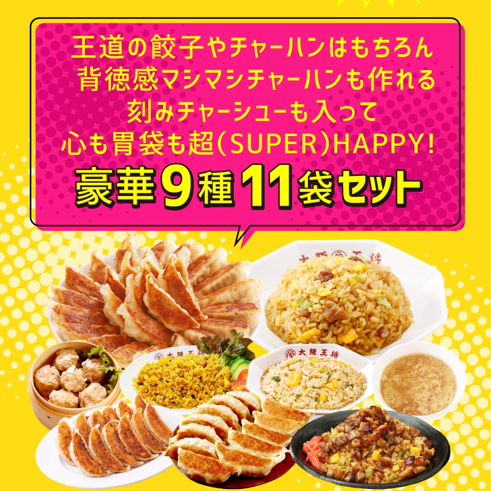 今回のモニター商品「大阪王将超(SUPER)ジャンボ福袋」を含む食卓シーン写真など
