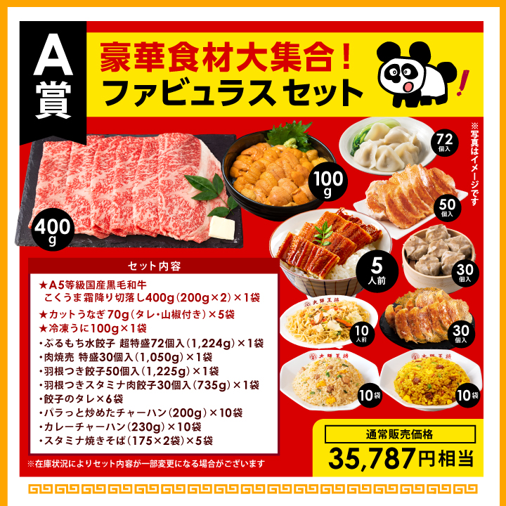 A賞はなんと35787円相当!ウニやお肉も入ってる超豪華版‼️当ててみたい〜!