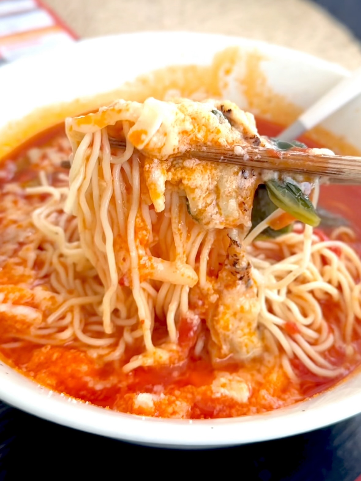 太陽のトマト麺の大人気メニュー! 太陽のトマトラーメン×チーズラーメンが一度に味わえる♪初めての方のお試しにピッタリです。さらにラーメン一杯でトマト約3個分(小型イタリア産有機トマト)のリコピンやビタミン、ミネラルも豊富に含まれているので、日々の食事に気をつかう方にぜひ、食べていただきたいヌードルセットです。美味しくて健康的なベジタブルラーメンをお楽しみください。