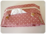 さて、最初に思いついた変身術、それはそう、ボックスティッシュケース(^o^)これは、結構だれでも思いついちゃうかな(^_^;)このランチョンマット、レースもタグもすでに付いてるし、端の処理もしなくて済むから、本当に超簡単あっという間に完成しちゃいますよ!!サイドを蛇腹に折って、真ん中はち… 2014/10/29
