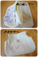 ランチョンマットの変身、2作品目はこちら!!ebipファンサイトファンサイト参加中中はポケットティッシュポッケ2個、ハンカチや使い捨てマスクなど入れておける横長ポッケ1つの「エチケットポーチ」となっております^m^これもランチョンマットに一切鋏を入れずに、そのままの形を生かして作ってみましたそれ… 2014/11/06