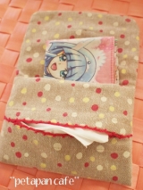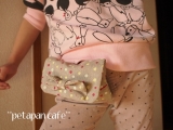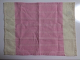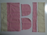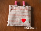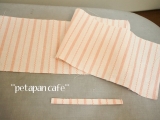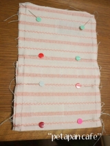 3枚目のランチョンマットは、ドット柄にピンクの縁取りがとってもかわいい一枚 この縁取りを生かして、今までの2枚とは形の違う移動ポケットを作りました まずは、こんな風に裁断します 縫い端を利用したクリップの紐を縫い付け、こんな感じでアイロンでたたみます 中表にして線のところを縫い… 2015/02/14