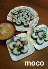 節分ですねぇ世の中のチビッ子は豆まきを楽しんだのかな?我が家も節分楽しみました不恰好ですが……息子3歳と作った巻き寿司細巻きです茹でたほうれん草焼き肉のタレで炒めた豚肉を、焼き海苔でクルクル具が本当にシンプル焼き海苔じゃなくて、韓国のりだとより美味しいのですが……3歳の息子への塩分を考えて少し太め… 2015/02/03