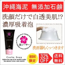 沖縄のごく一部でのみとれる海泥、「くちゃ」を配合した洗顔石けんくちゃ石けん美シーサー。