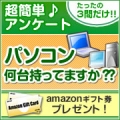 > 株式会社 EC studioさんでは、パソコンに関する【3問アンケート】に答えるとアンケートに回答してくださった方の中から抽選で5名様にAmazonギフト券500円分をプレゼントしてくださるイベントを実施中です【3問アンケート】パソコン何台持ってますか? 投票ランキングに参加中です… 2011/01/29