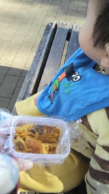 お天気がイイので、今日はお散歩途中でお昼にしました お日様ポカポカだし、お空は真っ青だし、 ウチのbabyも気持ちよさそうですo(^▽^)o 直径15cmくらいのホットケーキを、 ぺロリと完食(o^')b 食うの、早っ!!! 2011/01/06