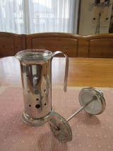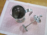 『エクーアシベットコーヒー』のモニターに選ばれ、最初の1杯はサイフォンで淹れました☕2杯目は、コーヒープレスで淹れてみたいと思います豆を8g用意しますコーヒーミルで中粗挽きにしますコーヒープレスに粉を入れて、お湯を少し注いで粉を蒸らしますうん、いい香り(´▽`)30秒ほど待ちます粉がふくらんだら残… 2015/08/28