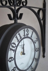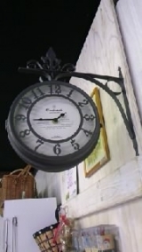 レトロな雰囲気のある壁掛け両面時計。