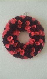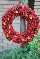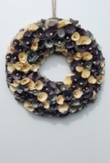 木の皮を丁寧に削り、自然染料を主にして染め上げた、天然素材のリースです。