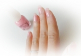 苺ミルクのようなピンク色。指先をキュートに演出。