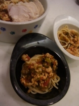 今日のワンコごはんは、我が家 定番のミートソーススパゲッティ 材料 鶏ひき肉 しいたけ 甘唐辛子 みょうがたけ 以上 今日は新食材2点を使ってみたの よく、ワンコのお料理本(?)にはスパゲッティなどは… 2012/06/07