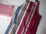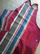新年を迎えるにあたり、色々新調したい エプロンもそのひとつ 手持ちのエプロンは、黒一色や赤一色とシンプルなものばかりそんななかでストライプ 落ち着いた色なので、派手になり過ぎずいい 梱包も非常に丁寧 こんな可愛いバッグに入ってくるので、贈り物にもいいのでは きれいに折り畳まれたエプロン… 2012/12/26