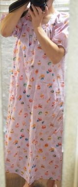 ★マカロンやカップケーキをちりばめたかわいいスイーツ柄のサマードレス。お部屋でのリラックスタイムに♪