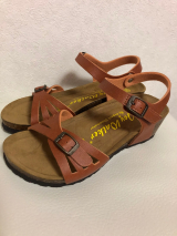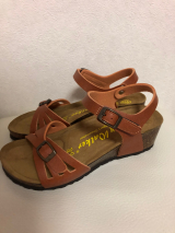 ★やわらかいソフトフットベッド入りのウェッジソールが、足に馴染んで疲れを軽減してくれます。また、5cmのヒールが足を長く綺麗に見せてくれます。足首のベルトは内側がマジックテープなっており、玄関先でも脱ぎ履きラクチンです。♪