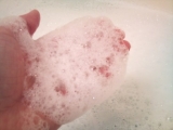 上品で素敵なバケツタイプの容器ですこれで350グラム、約2週間分ですバブルバスが楽しめるとのことでさっそく♪附属のメジャースプーンで3杯をお風呂の底に投入してからお湯を入れます直後こんなかんじでモコモコのバブルバスの完成!!(うちのお風呂こんな色じゃないよw光の加減てヤツですよ?)子どもたち、… 2013/04/17