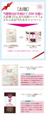 【当選後はがき返信で200名様に】入浴剤または泥パックをプレゼント♪ ←参加中 2014/01/06