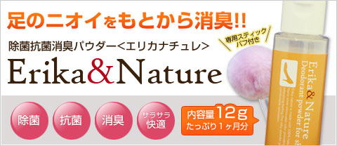 足元のニオイに敏感な27歳の女性社員・Erikaが同年代の女性のために開発した”女子系”消臭剤【Erika&Nature(エリカ・ナチュレ)】をはじめ、皆さまの快適な毎日をサポートする商品をお届けしています。