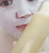 コインマスクにたっぷりと化粧水をしみ込ませた後、マスクを丁寧に広げ顔全体にフィットさせます。
