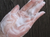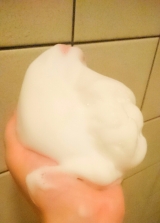 水またはぬるま湯で顔をぬらした後、100円玉大のパウダーをぬれた手に取り、少量の水またはぬるま湯を加えて、手と手をこすり合わせるようにして泡立てます。